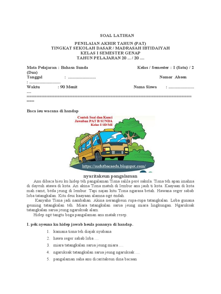 Artikel ieu didamel kanggo ngabantu murid-murid kelas 1 dina nyiapkeun diri kanggo ujian akhir semester 2 Bahasa Sunda. Di dieu, urang bakal ngabahas sababaraha conto soal anu sering muncul dina ujian, dibarengan ku penjelasan anu lengkep sareng gampang kahartos. Mugia artikel ieu tiasa janten pedoman anu mangpaat kanggo sadayana.